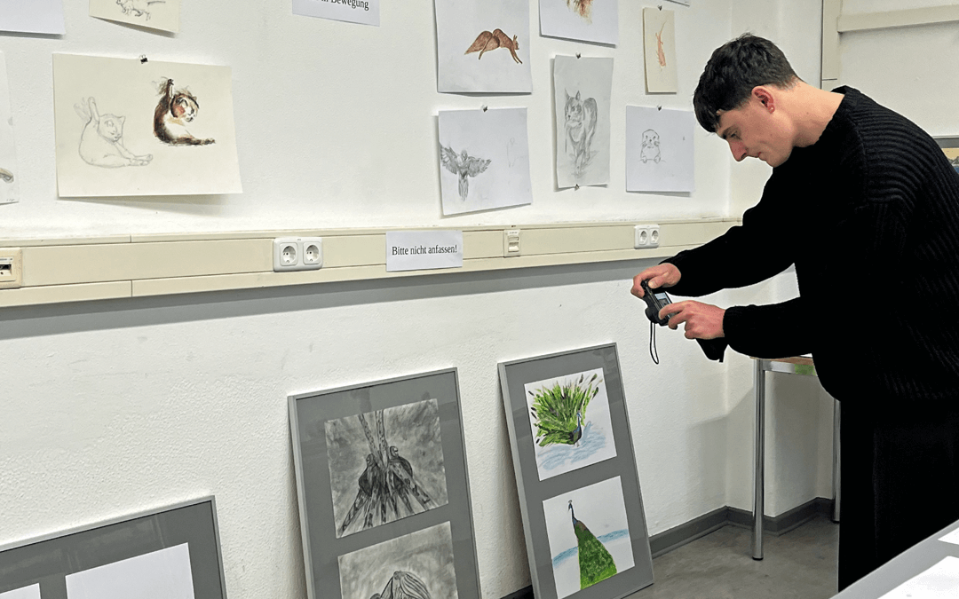 Dabei mussten sich einige Schüler*innen bewusst vom Perfektionismus lösen. Erst wurde detailliert gezeichnet, anschließend das abgebildete Tier wieder verwischt. Oder jemand stellte fest, dass etwas comicähnlich wirkte, je genauer das Tierfell dargestellt werden sollte. „Bilder sehen je nach Arbeitsmodus ganz anders aus. Diese Unterschiede haben wir reflektiert,“ berichtet eine Schülerin und ergänzt: „Irgendwann muss man sich dann selbst ‚Stopp‘ sagen.“